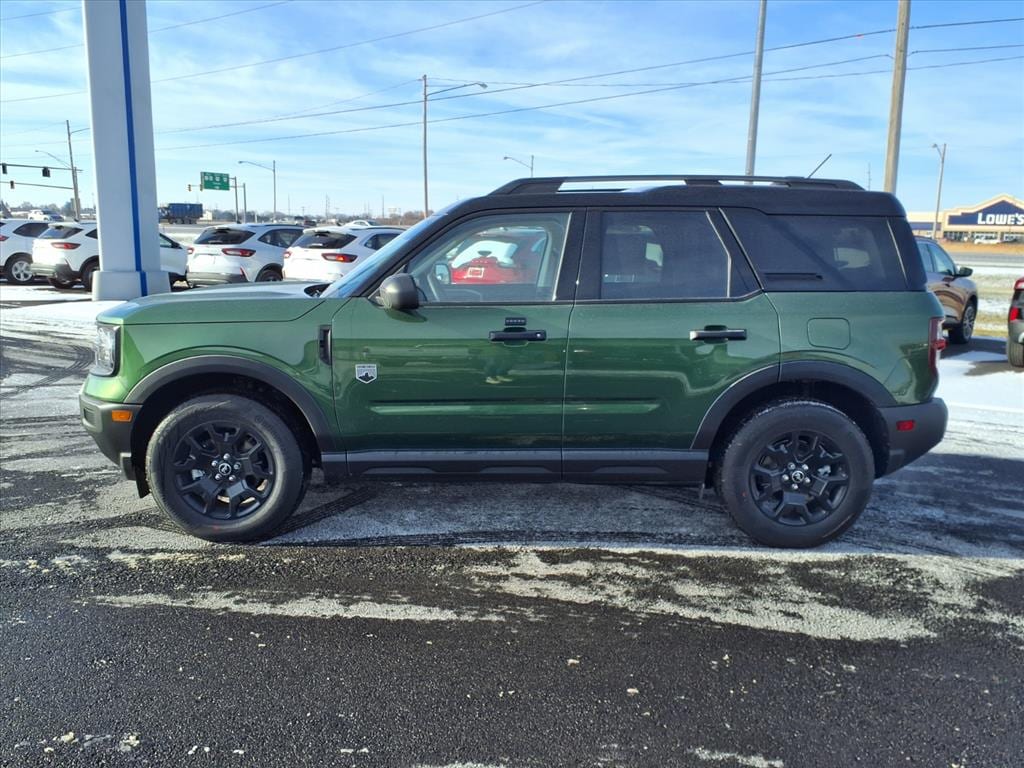 The Ford Bronco Sport Big Bend is a 2025 Vehicle all wheel drive, with a 1.5 liter 3 cylinder engine and turbocharged power. It has a green exterior and an ebony interior, giving it a stylish look. It has a crash test rating of 5 out of 5 stars, and features such as touch screen display, Bluetooth audio connection, blind spot sensor, hill start assist, on demand four wheel drive, and Bluetooth phone connectivity. This vehicle is sure to turn heads on the road and provide you with the ultimate driving experience. Our motto - Where Friends Send Friends!!! Come visit our showroom today. We are located at 885 Hagerty Drive, Fremont, OH, 43420. Is this the car you've been looking for Contact Debby at (419) 334-9751 or by e-mail at debbyg@advantagefordlincolnsales.com.