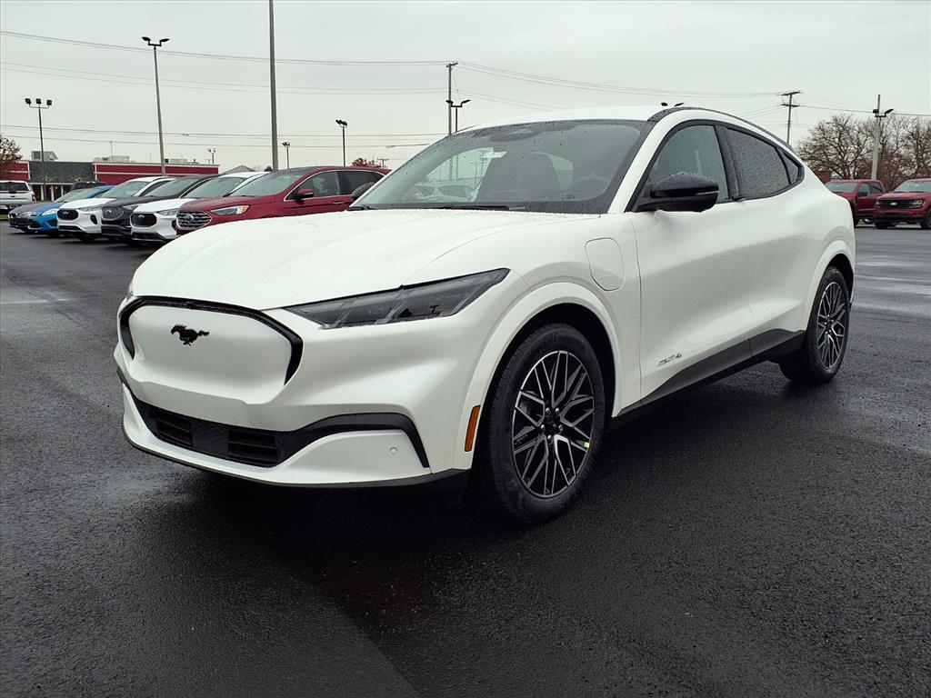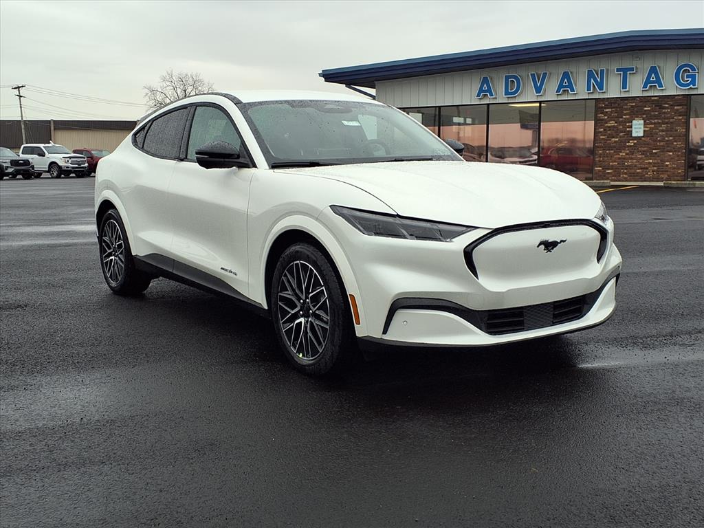 The Ford Mustang Mach-E Premium is a vehicle of the future, made in 2025. This all-wheel drive SUV has a star white metallic tri-coat exterior and a black onyx interior, giving it a sleek and modern look. It also has a crash test rating of 5 out of 5 stars, making it one of the safest vehicles on the market. The features of this car are truly impressive, including a touch screen display, Bluetooth audio connection, blind spot sensor, on demand four wheel drive, navigation system with voice recognition, navigation with touch screen display, and Bluetooth phone connectivity. Additionally, the leather seats provide a comfortable ride for all passengers. With its advanced technology and safety features, the Ford Mustang Mach-E Premium is sure to turn heads on the road. Our motto - Where Friends Send Friends!!! Come visit our showroom today. We are located at 885 Hagerty Drive, Fremont, OH, 43420. Is this the car you've been looking for Contact Debby at (419) 334-9751 or by e-mail at debbyg@advantagefordlincolnsales.com.