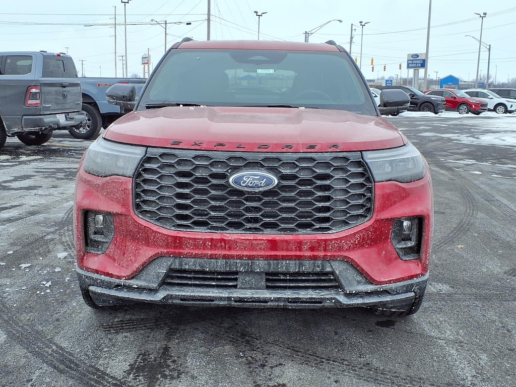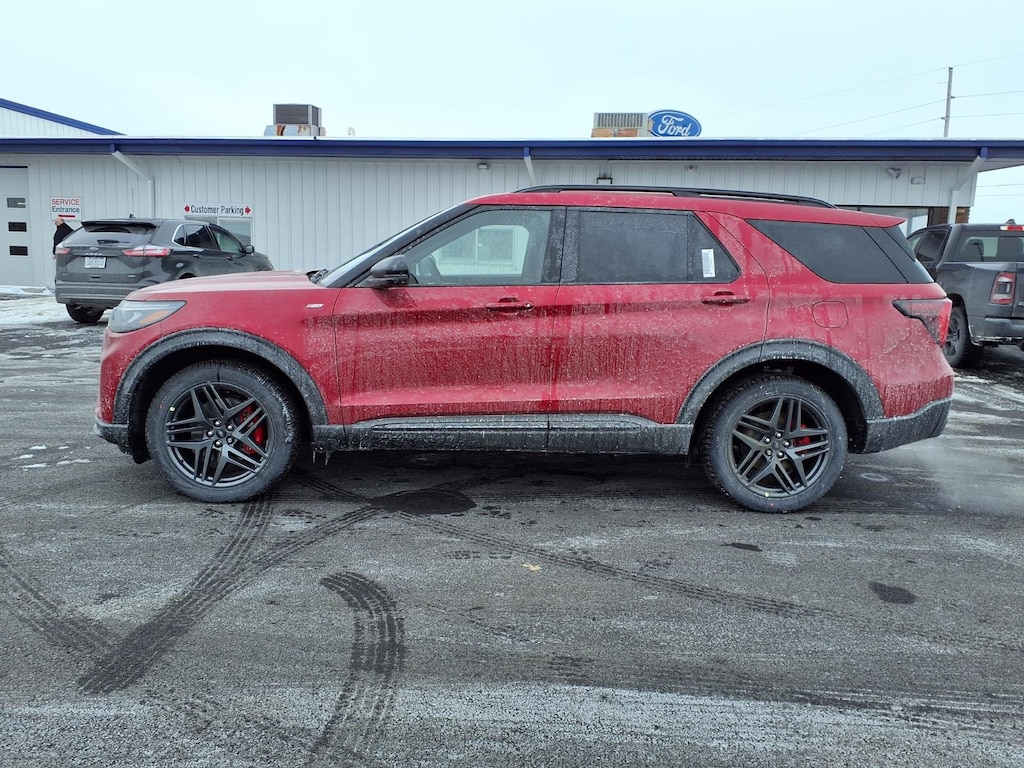 The 2026 Ford Explorer ST-Line is a powerful and reliable SUV all wheel drive. It has a rapid red metallic tinted clearcoat exterior and an onyx interior, making it stand out from the crowd. It has a 2.3 liter 4 cylinder engine with turbocharged capabilities, giving it an impressive fuel economy of 20 mpg in the city and 27 mpg on the highway. It also has a crash test rating of 5 out of 5 stars, making it one of the safest vehicles on the road today. The vehicle also comes with a number of features such as touch screen display, Bluetooth audio connection, blind spot sensor, hill start assist, center console with faux leather trim, on demand four wheel drive, navigation system with voice recognition, and Bluetooth phone connectivity. All in all, the 2026 Ford Explorer ST-Line is an excellent choice for anyone looking for a reliable and powerful vehicle. Our motto - Where Friends Send Friends!!! Come visit our showroom today. We are located at 885 Hagerty Drive, Fremont, OH, 43420. Is this the car you've been looking for Contact Debby at (419) 334-9751 or by e-mail at debbyg@advantagefordlincolnsales.com.