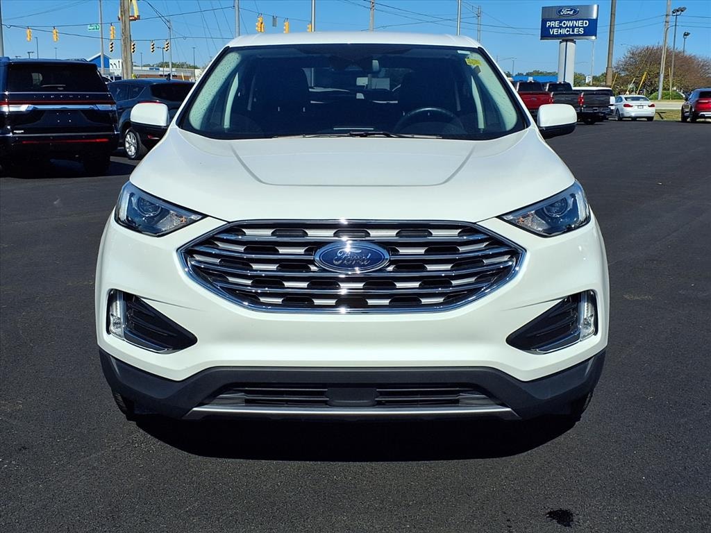 This vehicle is a 2022 Ford Edge SEL Crossover all wheel drive with a low mileage of 15,836 miles. It has a star white metallic tri-coat exterior and an ebony interior. It has a 2.0 liter 4 cylinder engine with turbocharged capabilities and a star rating of 5 out of 5 stars for crash test rating. This car also has features such as touch screen display, Bluetooth audio connection, blind spot sensor, hill start assist, on demand four wheel drive, navigation system with voice recognition, navigation with touch screen display, Bluetooth phone connectivity, leather seats. This car has an impressive fuel economy of 20 mpg in the city and 28 mpg on the highway. It also has a star white metallic tri-coat exterior and an ebony interior to match. With a carfax report available, this car is sure to be a great investment for anyone looking for a reliable car with low mileage. Our motto - Where Friends Send Friends!!! Come visit our showroom today. We are located at 885 Hagerty Drive, Fremont, OH, 43420. Is this the car you've been looking for Contact Debby at (419) 334-9751 or by e-mail at debbyg@advantagefordlincolnsales.com.